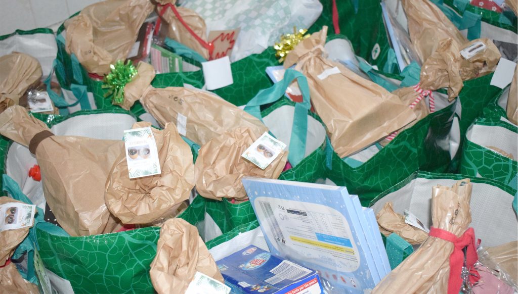 O Núcleo Rotário de Desenvolvimento Comunitário de Sintra (NRDC), em parceria com o Rotary Club de Sintra, doou como habitualmente, cabazes de Natal a 70 famílias, compostos por bens alimentares e por produtos de higiene (pessoal e para casa). Sempre que possível, “mimamos” as famílias, nomeadamente as que têm no seu agregado familiar, crianças, com alguns presentes simbólicos, o que se verificou com a apoio do Banco de Recursos da Câmara Municipal de Sintra.